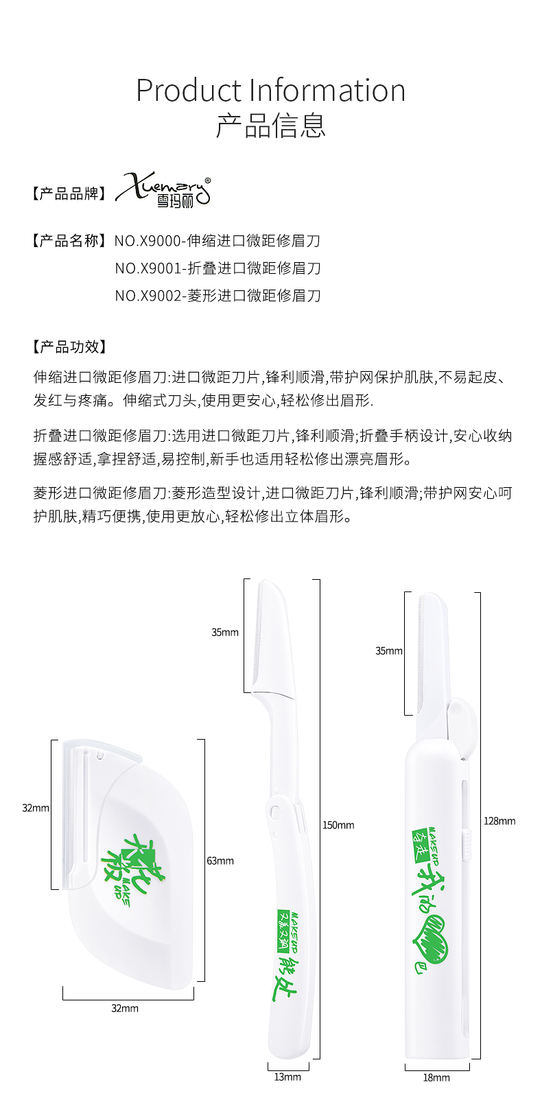 X9000-X9001-X9002-伸缩折叠菱形进口微距修眉刀